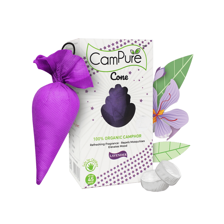 CamPure 100% Organic Camphor Car Freshener Cone – Lavender (Lavender) – 60 g