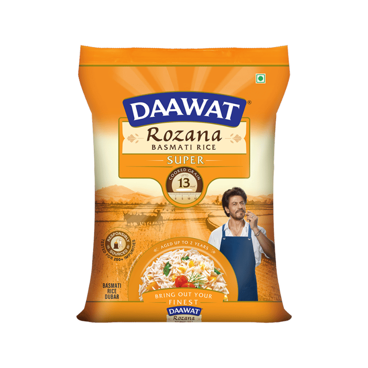 Daawat Rozana Super Basmati Rice is crafted for daily household use with uniform medium grains. The rice cooks evenly and delivers soft texture with subtle fragrance. It absorbs flavors well and provides dependable quality for regular meals.