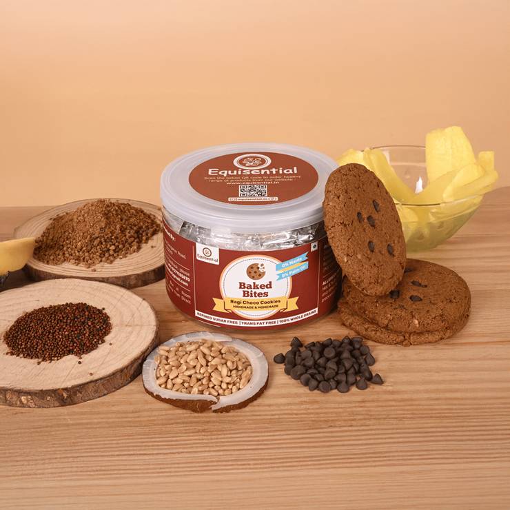 Equisential Ragi Choco Cookies combine the nutritional value of ragi with indulgent chocolate flavour. The cookies deliver a crisp bite with balanced sweetness, making them suitable for mindful snacking. Ideal for tea-time or casual munching, they offer a blend of traditional grains and modern taste preferences.