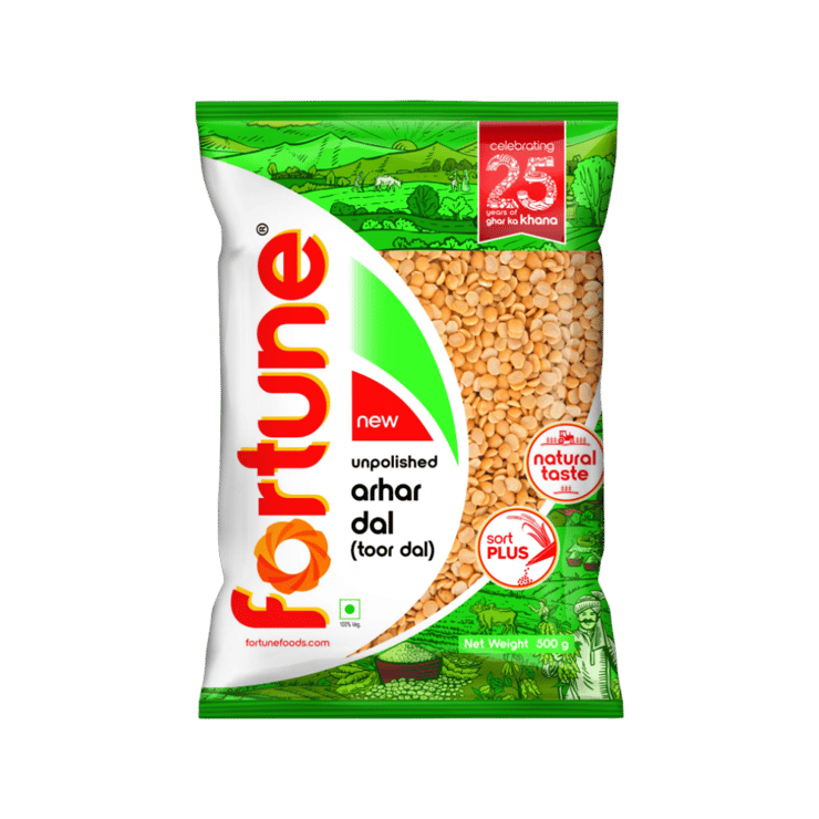 Fortune Unpolished Arhar Dal is minimally processed to retain fiber and essential nutrients. The dal cooks evenly and delivers smooth texture with robust flavor. It supports wholesome daily meals and dependable cooking performance.