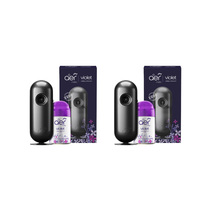 Godrej Aer Matic Air Freshener – Violet Valley Bloom (Machine + Refill) (Violet) – Pack of 2 – 2 x 210 ml + 1 piece