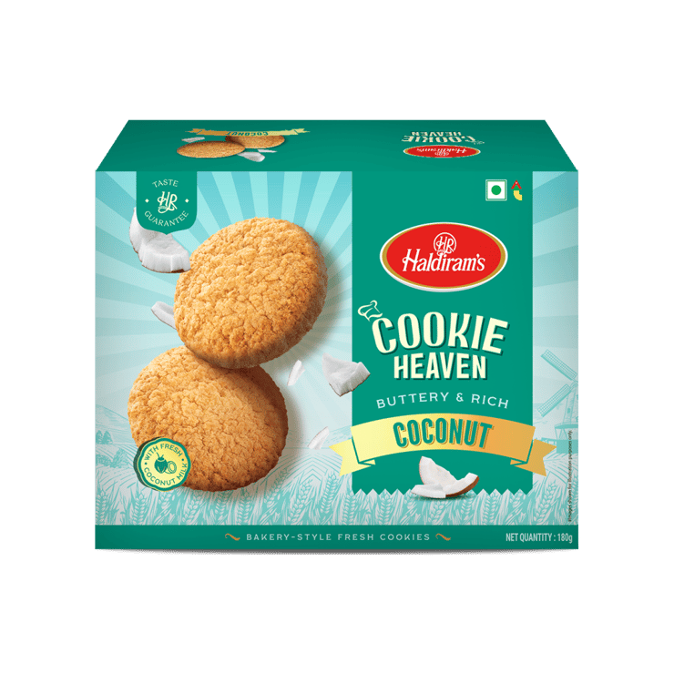 Haldiram’s Heaven Coconut Bakery Cookies are crafted with coconut to deliver a crunchy, aromatic snacking experience. The buttery cookie base and coconut flavour create a comforting and indulgent bite. Suitable for tea-time, gifting, or festive occasions, these cookies reflect trusted bakery craftsmanship and premium quality.