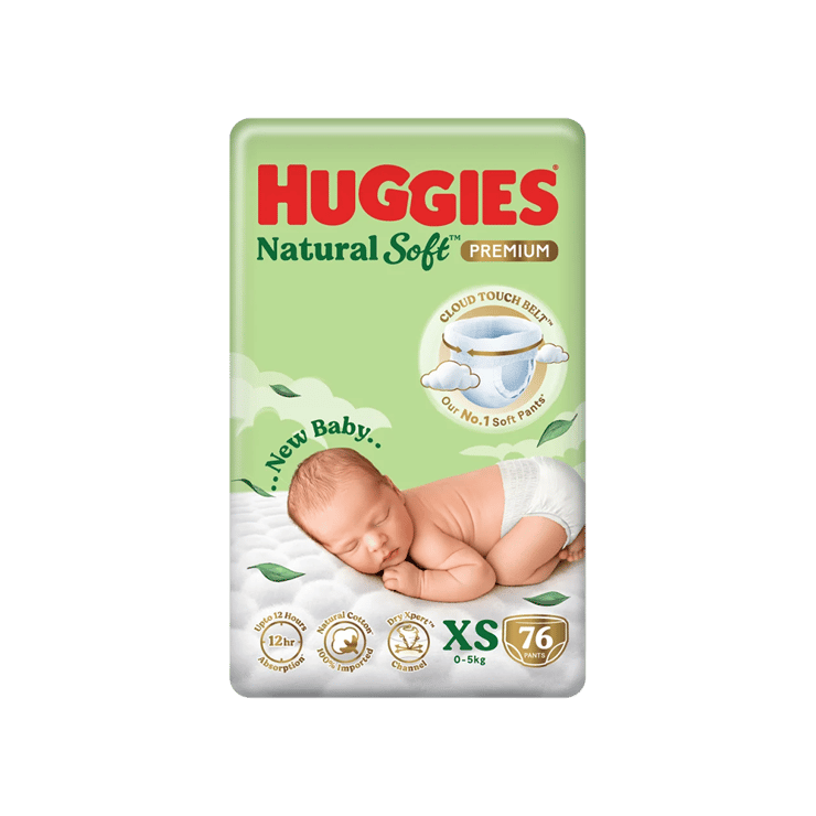 Huggies Natural Soft Premium Baby Diaper (Pants, XS, 0-5 kg)