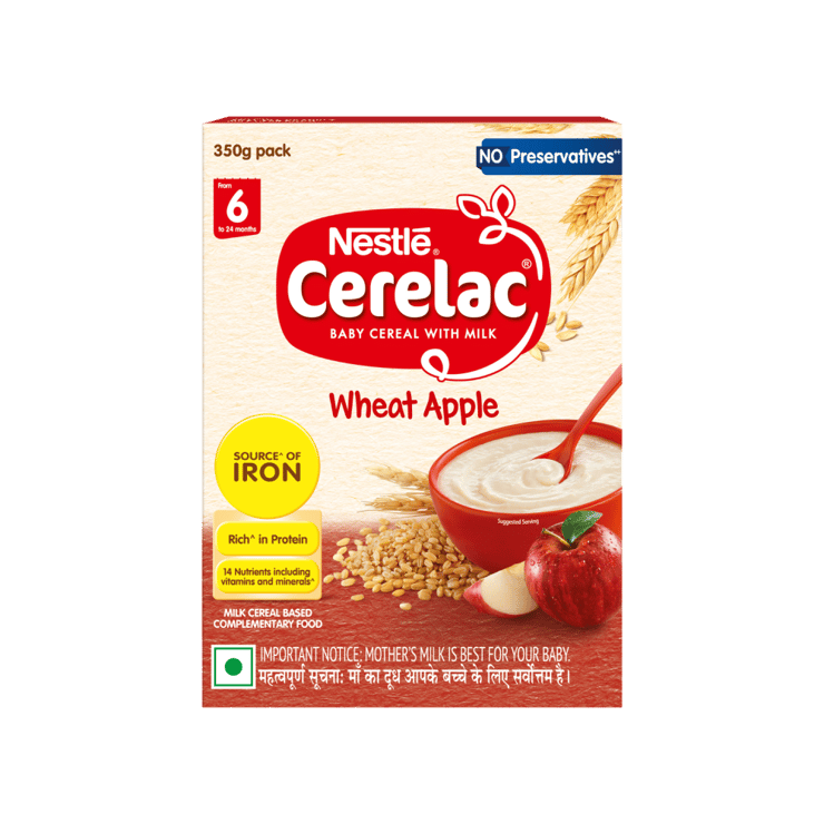 Nestle Cerelac Wheat Apple Baby Cereal is formulated for babies starting solid foods. It offers a mild taste and smooth consistency that is easy to digest. Designed for babies from six months onwards, it supports regular feeding routines as part of a balanced diet.