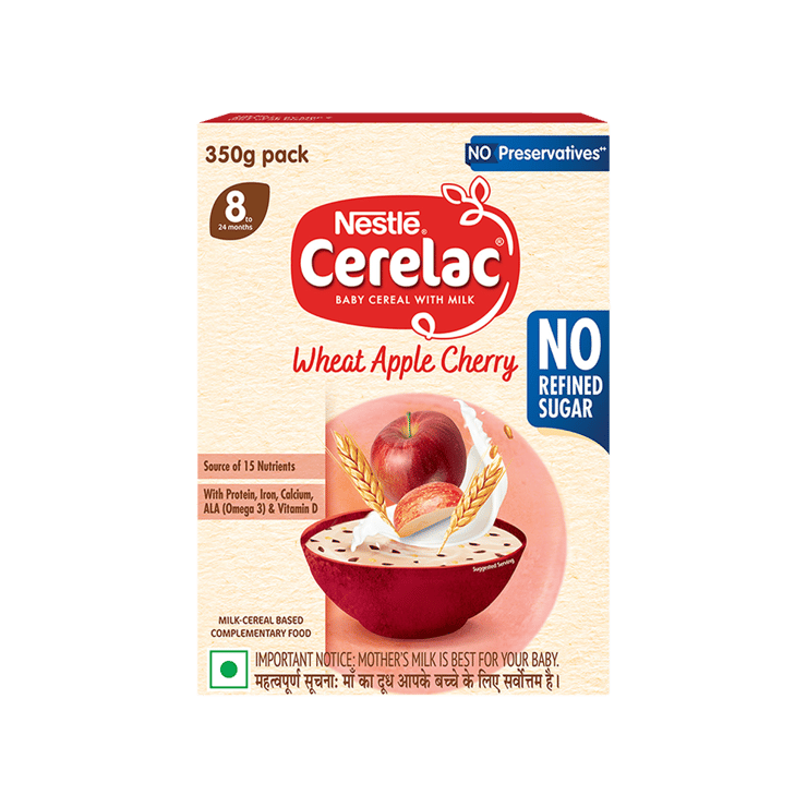 Nestle Cerelac Wheat Apple Cherry Baby Cereal (8 to 24 Months, No Refined Sugar)