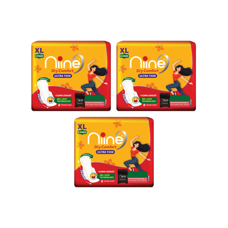 Niine Dry Comfort Ultra Thin Sanitary Pads – Pack of 3 – 3 x 1 pack (6 pieces)
