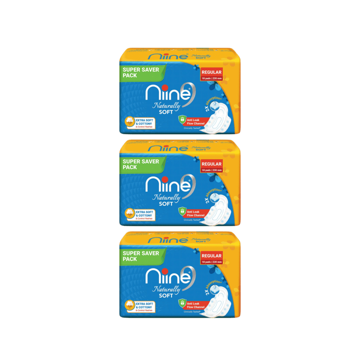Niine Naturally Soft Regular Sanitary Pads – Pack of 3 – 3 x 18 pieces