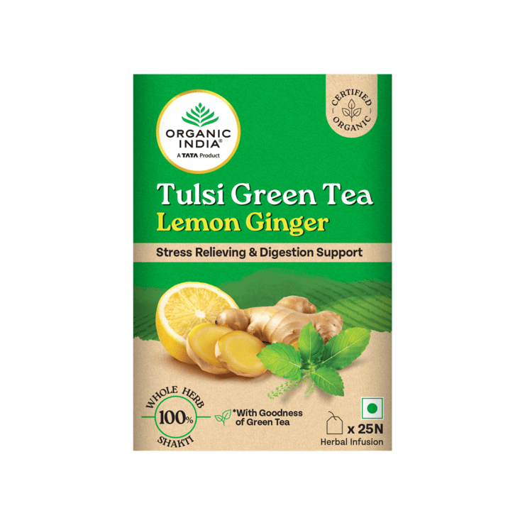 Organic India Lemon Ginger Tulsi Green Tea Bags – 25 pieces