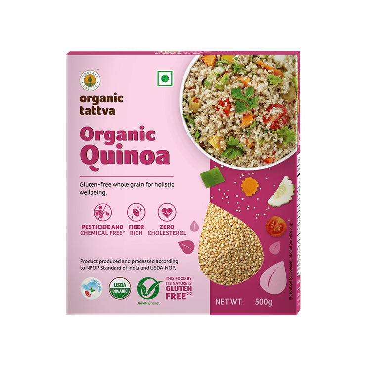 Organic Tattva Organic Quinoa is organically grown and carefully processed to retain nutrients. It cooks evenly into fluffy texture with mild nutty flavor. Naturally rich in protein and fiber, it supports balanced diets and clean eating preferences.