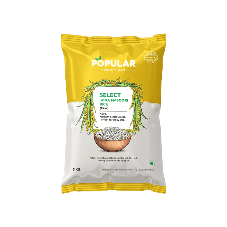 Popular Essentials Select Raw Sonamasuri Rice (Medium Grain) – 5 kg