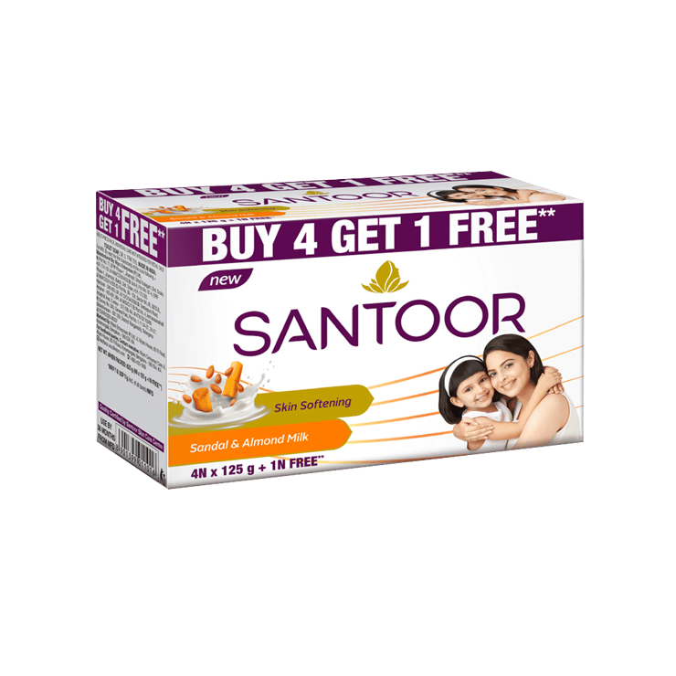Santoor Skin Softening Sandal & Almond Milk Soap – Buy 4 Get 1 Free – 4 x 125 g + 125 g