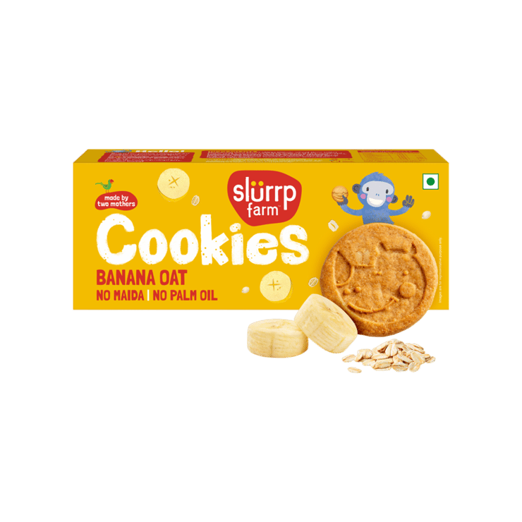 Slurrp Farm Banana Oat Cookies are designed to combine oats and banana flavour in a kid-friendly cookie format. The cookies deliver a gentle crunch with naturally appealing taste. Suitable for snack breaks or lunchboxes, they offer a familiar flavour profile crafted for everyday enjoyment.