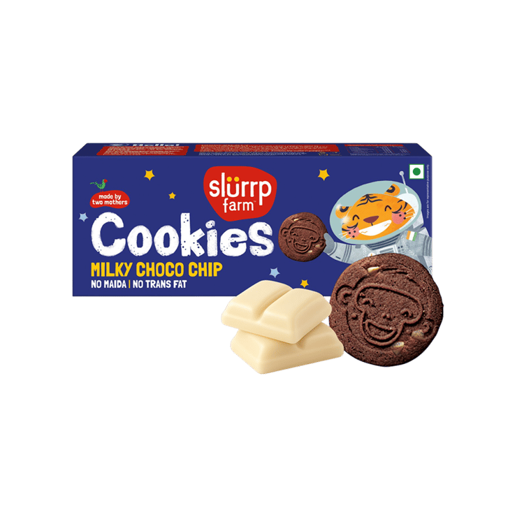 Slurrp Farm Milky Choco Chip Cookies feature a comforting milky base with chocolate chips for added indulgence. The crunchy texture and mild sweetness make them suitable for snack time or treats. Crafted for younger taste preferences, these cookies offer consistent flavour and enjoyable texture.