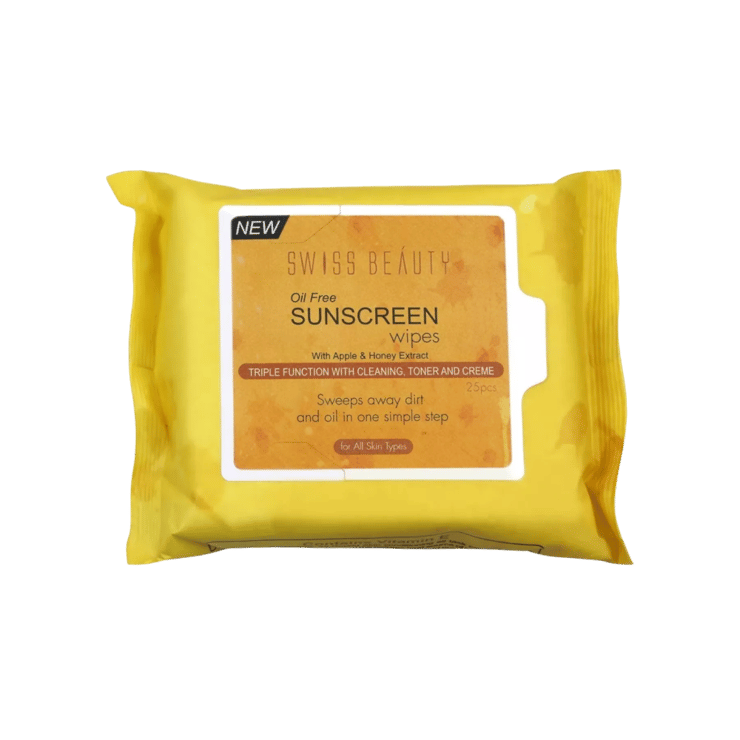 Swiss Beauty Oil Free Sunscreen Wipes with Apple & Honey Extract – 1 pack (25 pieces)