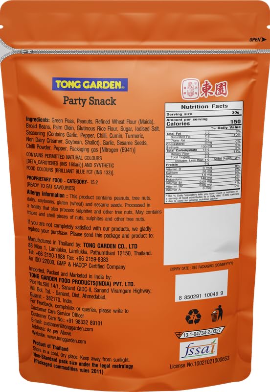 - About Product: Tong Garden Premium International Party Snack is a crunchy mix of peanuts, green peas, broad beans, and sesame, perfectly seasoned for a flavorful snack.