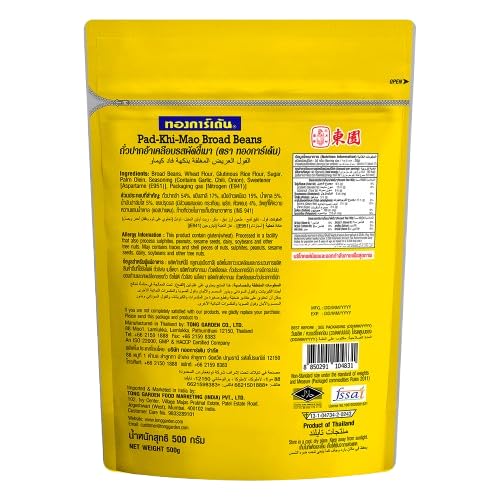 Tong Garden 500g Pad-Khi-Mao Broad Beans | Crispy Snack with Garlic, Chili & Onion | Crunchy, Flavorful, and Healthy Snack Option – (Pack of 2)