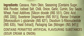 - Crispy cassava chips with sour cream and onion flavor, crispy, delicious to the taste of real tapioca.