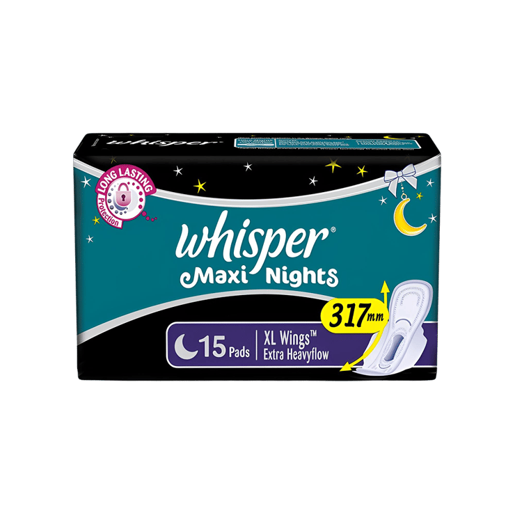 Whisper Maxi Night Sanitary Pads (Extra Large Wings – 15 units) – 15 pieces