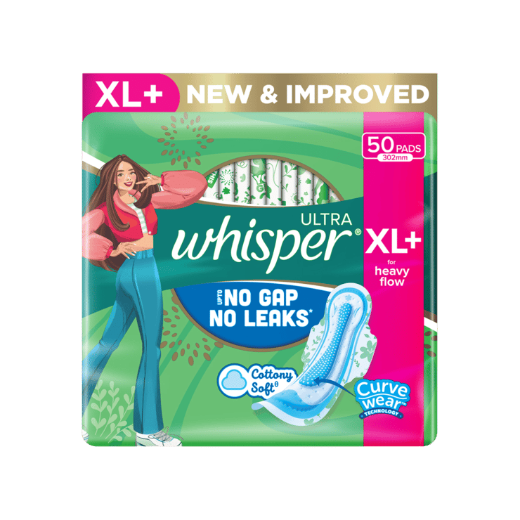 Whisper Ultra Upto No Gap No Leaks Sanitary Pads (XL+, 50 pieces) – 50 pieces