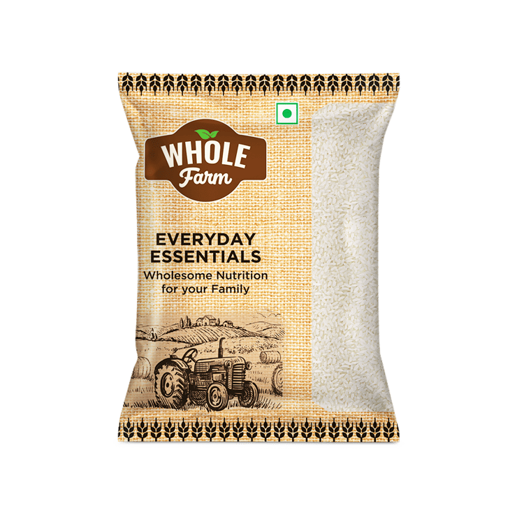 Whole Farm Premium Raw Sonamasuri Rice is naturally aged to enhance grain strength and flavor. The medium grains cook evenly and deliver soft, fluffy texture with mild aroma. It is suitable for daily meals, offering consistent quality and dependable cooking results.