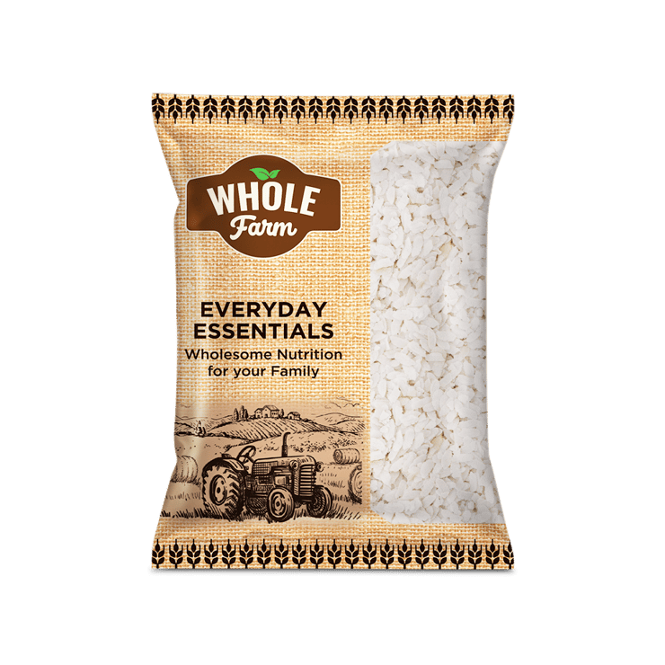 Whole Farm Premium Thin Poha is made from carefully processed rice flakes designed for fast preparation. It delivers soft texture and mild flavor, making it suitable for a variety of breakfast and snack recipes. This poha supports convenient cooking and consistent quality for daily use.